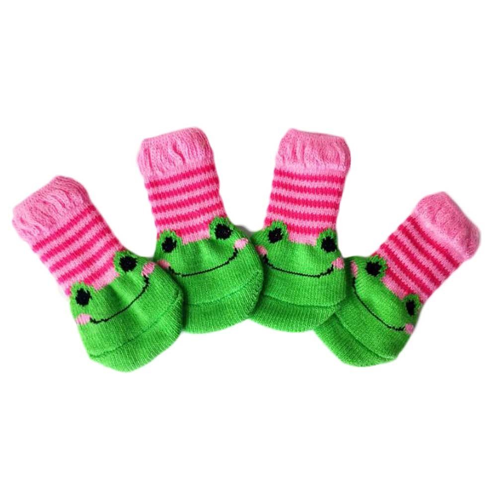 Home > 4 Pcs Cats Dogs Knitted Socks Cute Pink Green Frog Foot Covers Scratch Dirt Resistant Paw Protect Puppy Teddy Corgi Pet Shoes