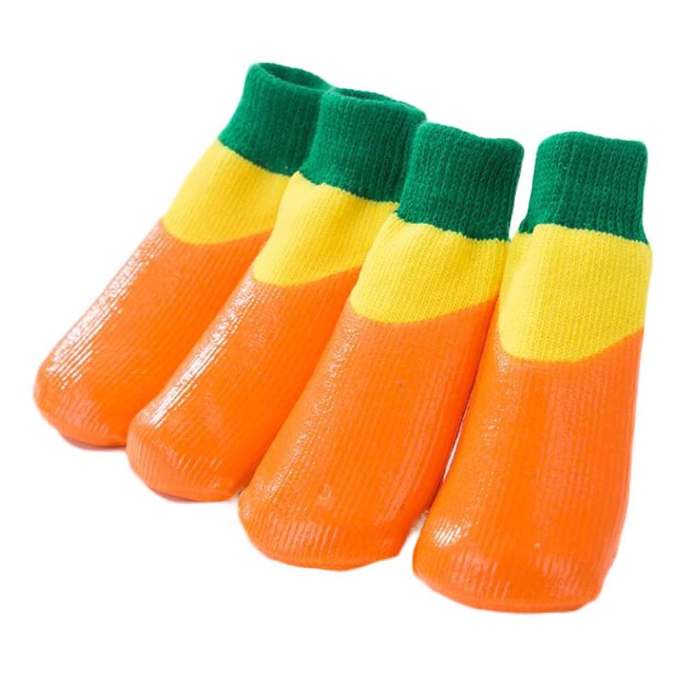 4 Pcs Dog Knitted Socks Pet Leg Socks Teddy Small Dog Waterproof Coated Socks Scratch Proof Protective Socks, Orange 4#