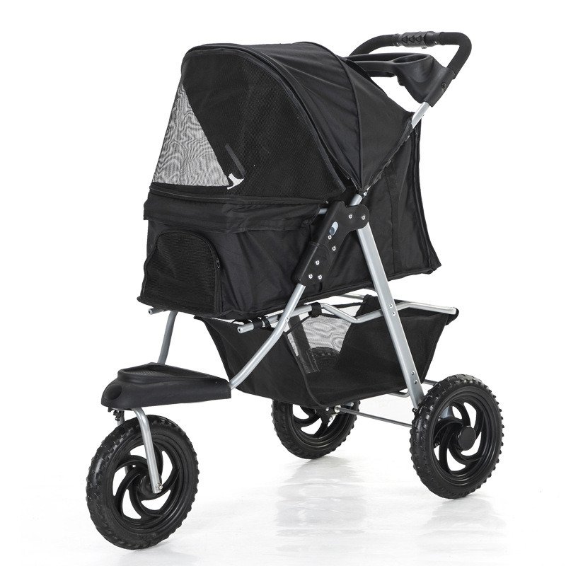 Three Wheel Folding Pet Stroller, Dog Jogger Travel Cats Carrier Adjustable Canopy Storage Brake Mesh Window