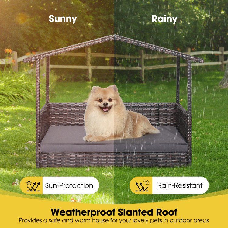 Home > Outdoor Wicker Dog House with Weatherproof Roof
